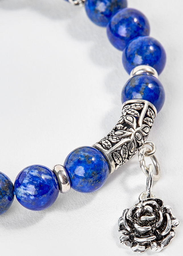 - Mang Vòng Tay Đá Lapis Lazuli Phối Charm Hoa Hồng Bạc làm xua tan giận dữ, khiến tính khí ôn hòa, thích hợp với người khó khăn trong việc tâm sự việc cá nhân.