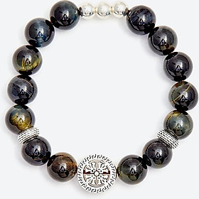 Vòng tay đá mắt hổ phối hình tròn bạc Ngọc Quý GemstonesVòng tay đá mắt hổ phối hình tròn bạc Ngọc Quý GemstonesVòng tay đá mắt hổ phối hình tròn bạc Ngọc Quý Gemstones