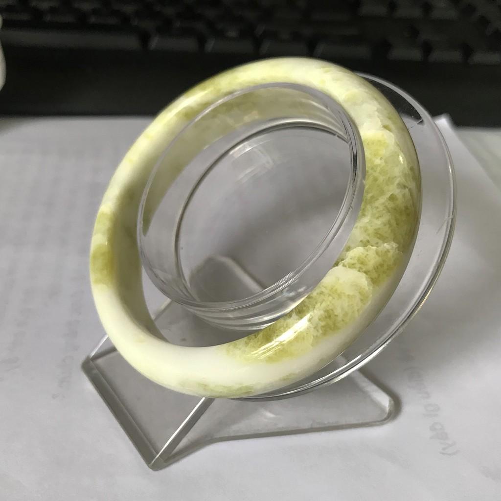 2. Màu sắc và kích thước: Bản hẹ, tức là bản dẹp. Màu trắng đốm ngọc vàng chanh 3. Size từ 5.1 đến 6.2 cm, chiều cao vòng từ 1.5 cm bạn đo tay theo