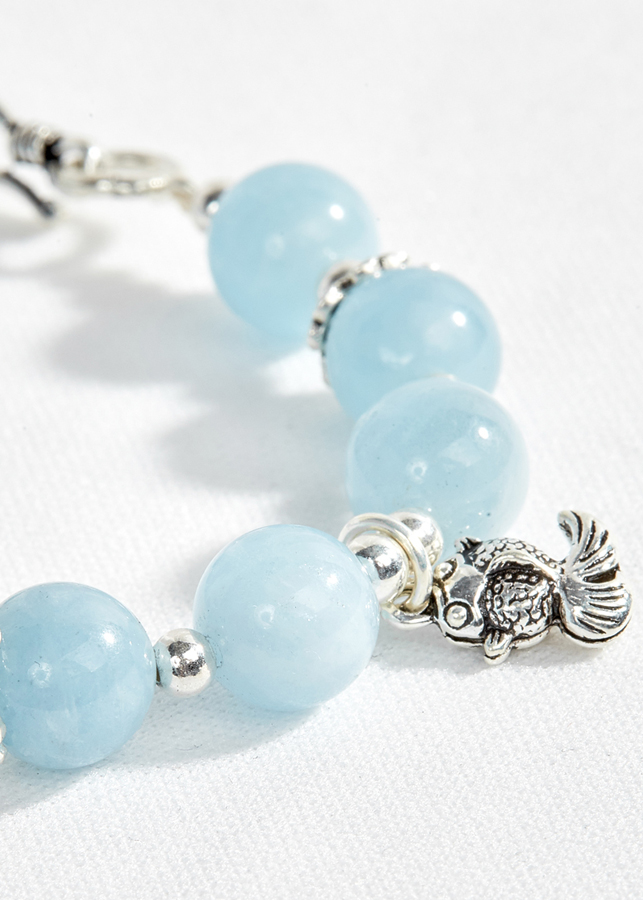 Vòng tay đá hải lam ngọc mix charm bạc - Hợp Mệnh Thủy & Mộc [ Ngọc Quý ]