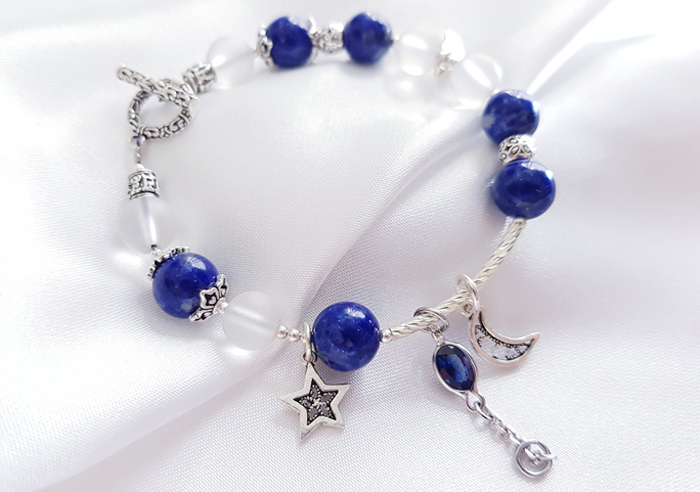Vòng Tay Laliz Mệnh Thủy Đá Lapis Lazuli Mix Thạch Anh Trắng Charm Đá Saphire - TAR.05Vòng Tay Laliz Mệnh Thủy Đá Lapis Lazuli Mix Thạch Anh Trắng Charm Đá Saphire - TAR.05