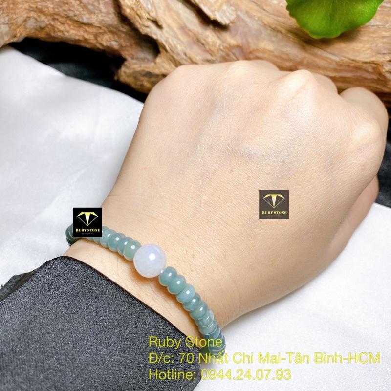 Vòng tay Nữ Đá Cẩm Thạch mới TR Lý 57 mm x cọng 7,5mm Màu Xanh lý tươi trắng 2 bên đều vòng đẹp Nữ 55kg - 64kg đeo đẹp món quà tặng chính mình