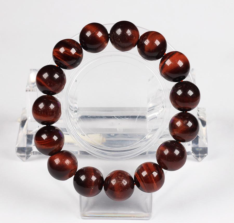 Đá quý Hà Nguyễn - vòng tay đá mắt hổ nâu đỏ 14 ly