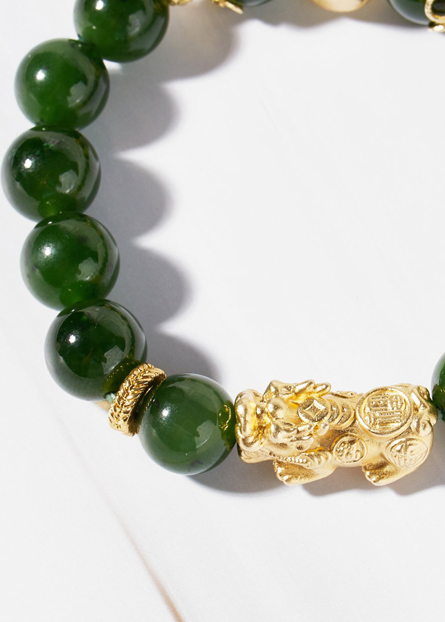 Vòng tay đá ngọc bích nephrite phối tỳ hưu - Hợp mệnh mộc, hỏa | Ngọc Quý Gemstones |