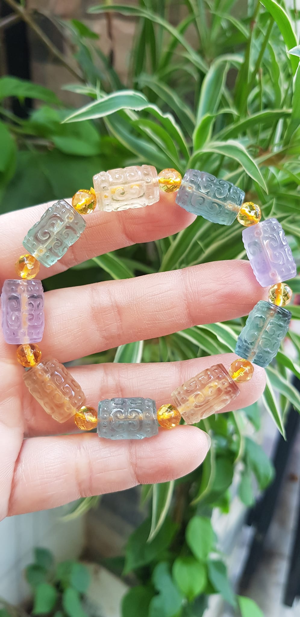 Vòng Tay nữ charm cao cấp Fluorit tự nhiên đa sắc kiểu hạt lu 10mm phối tròn đẹp sang Shop Sunny Q8
