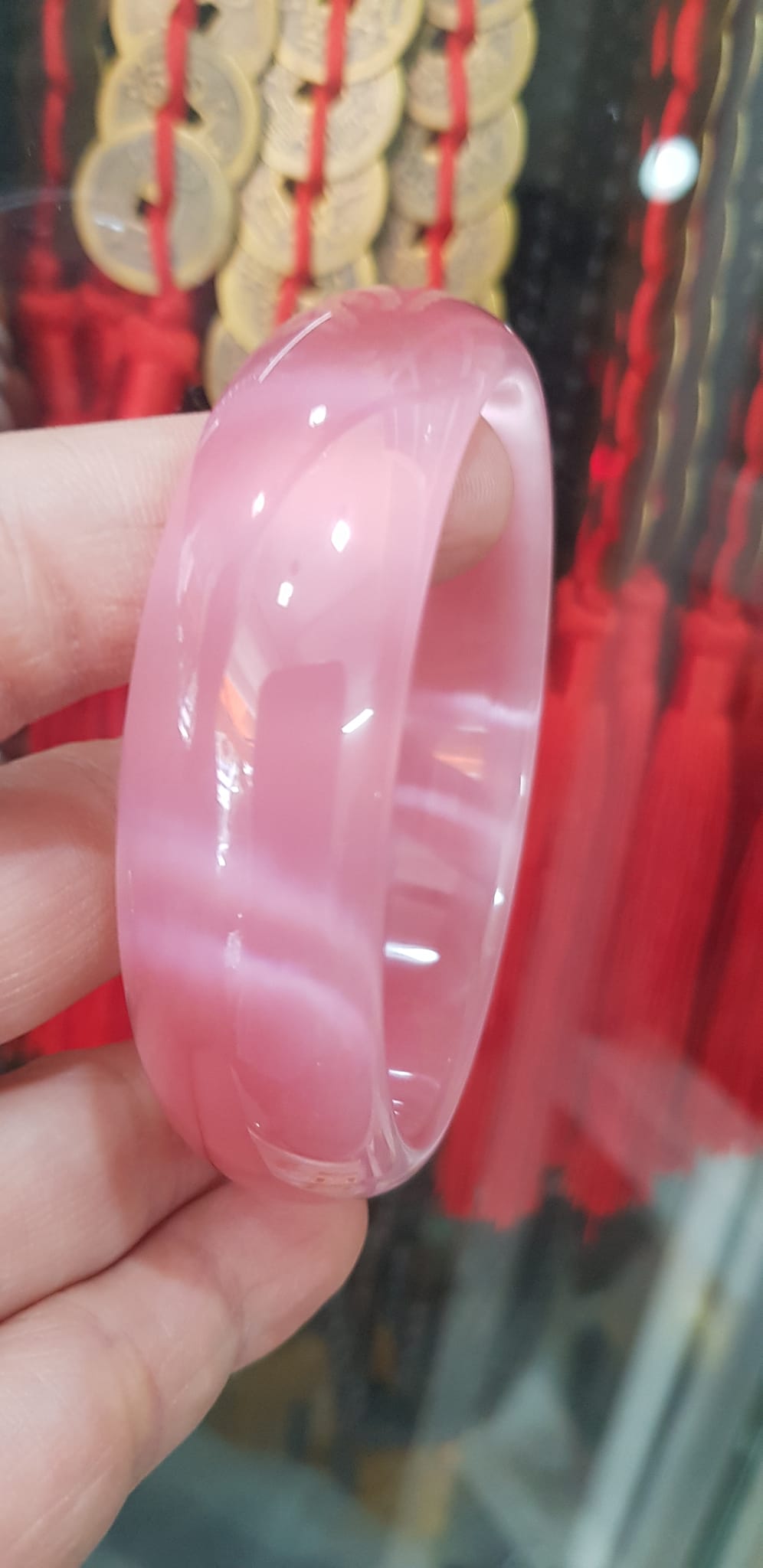Vòng Thạch Anh Hồng Tự Nhiên Bản Hẹ Mới đẹp Ni 52mm Cao 11mm Dầy 8mm Màu Hồng xinh bóng đẹp Nữ mệnh Hỏa mệnh Thổ tay nhỏ đeo 45kg - 52 kg ạ Vòng