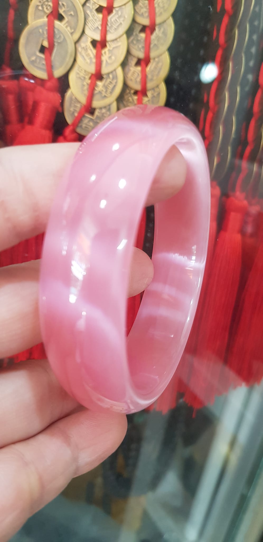 Vòng tay Nữ Bản Hẹ Mới Đá Mã Não Bông Tuyết Hồng nhẹ trắng trong bóng quá đẹp luôn ạ Ni 53mm x Cao 11mm x dầy 7mm Nữ Cân nặng 52kg - 55kg đeo