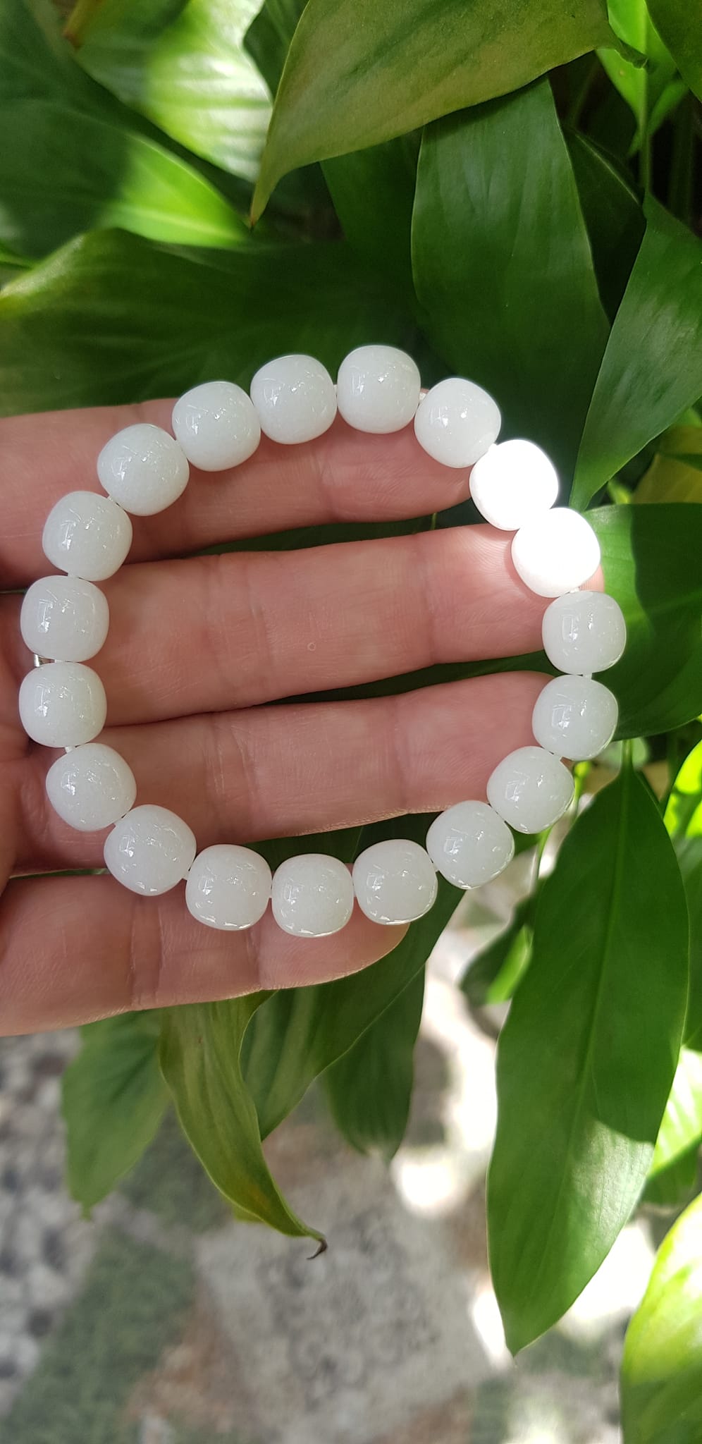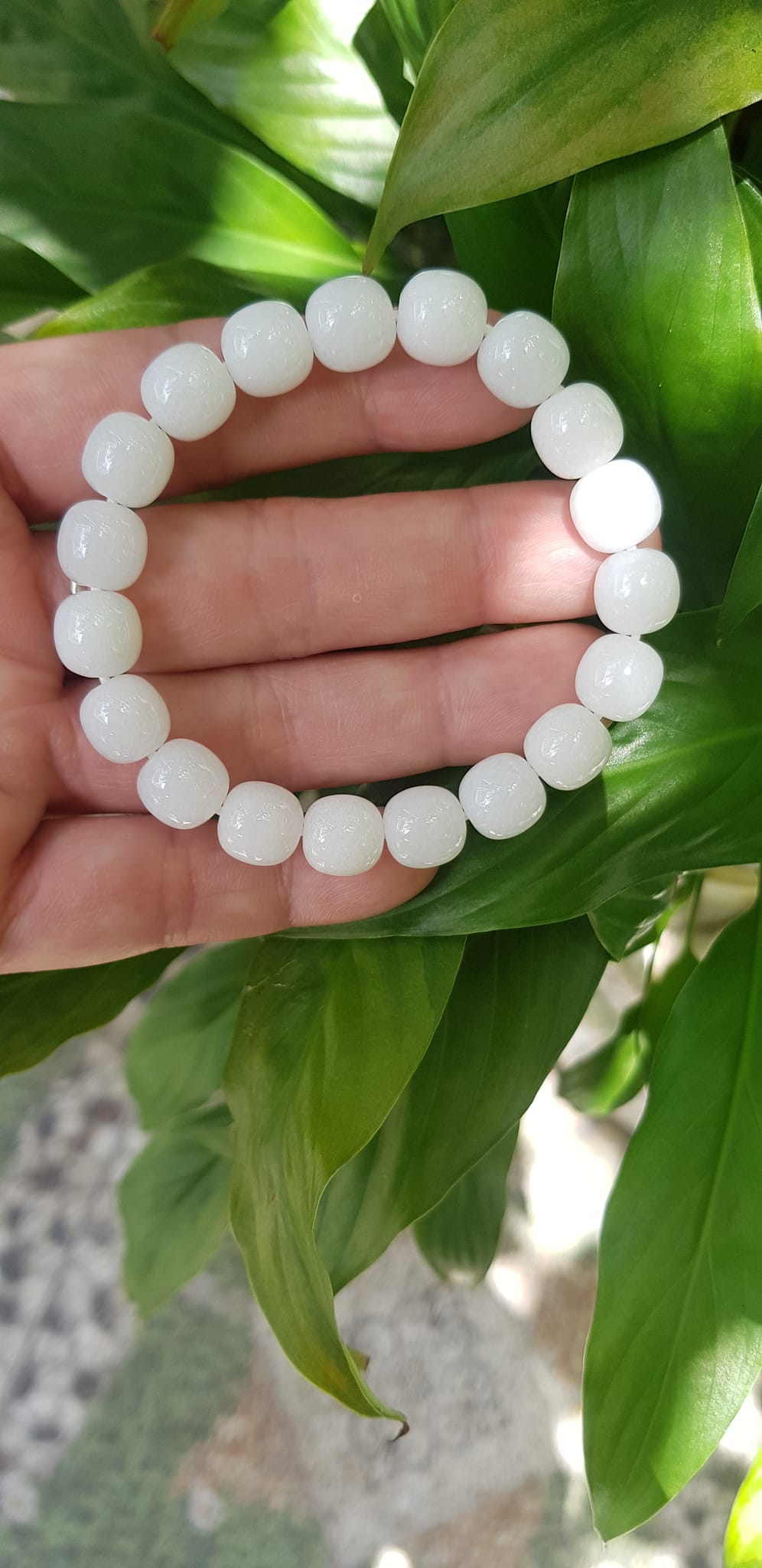 Mua tại TiktokVòng Tay Nữ Đá Ngọc Hoà Điền TRẮNG bầu Tự Nhiên Size 9li5 đẹp Màu Trắng sáng Nữ mệnh Kim Thủy Mang năng lượng tích cực may mắn tài lộc tốt công việc đeo đẹp xinh tay ạ