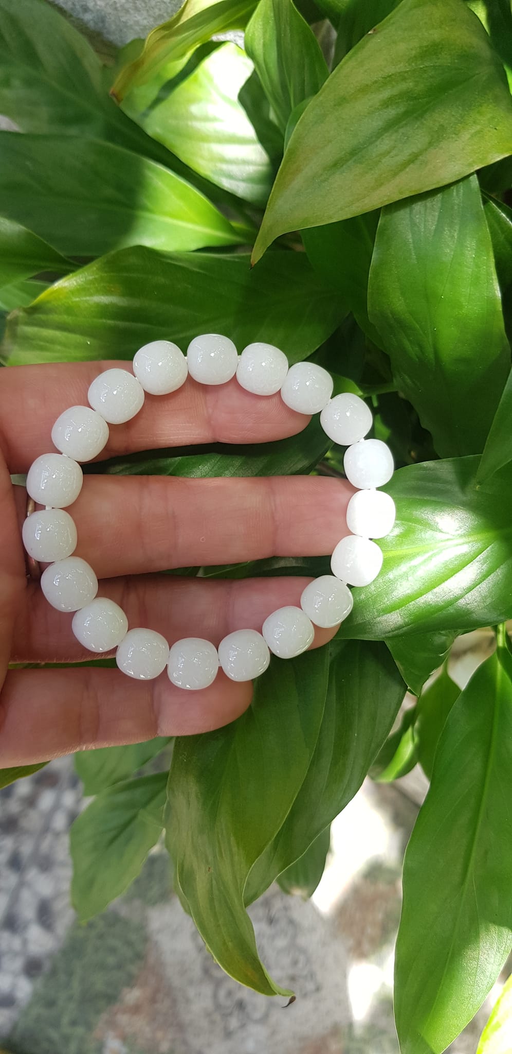 Vòng Tay Nữ Đá Ngọc Hoà Điền TRẮNG bầu Tự Nhiên Size 9li5 đẹp Nữ mệnh Kim Thủy mang năng lượng tốt