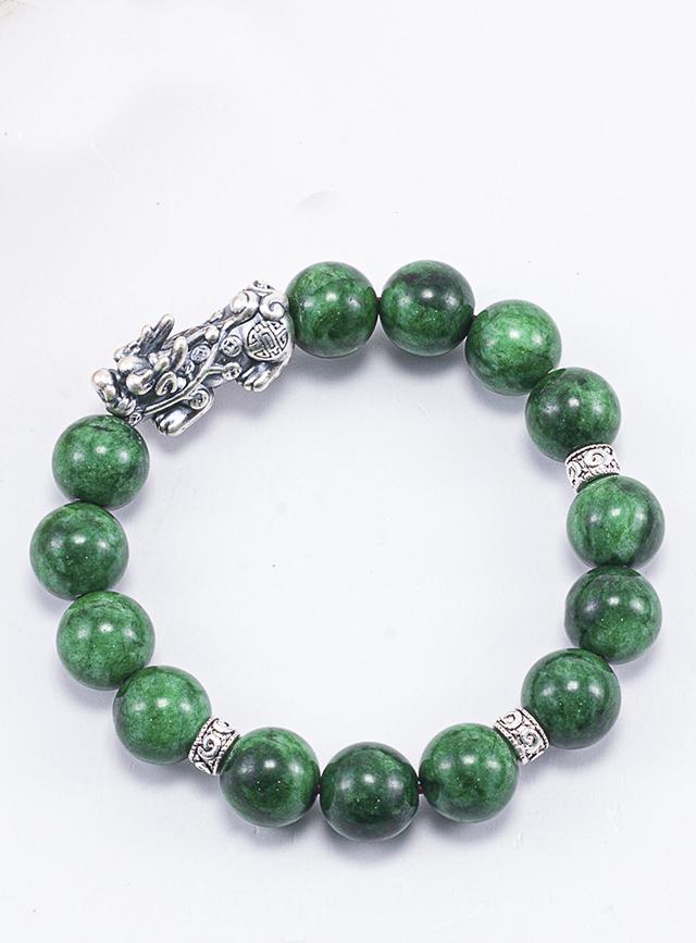 Vòng Tay Phong Thủy Đá Cẩm Thạch Sơn Thủy Phối Charm Tỳ Hưu Bạc (10mm) Mệnh Mộc, Hỏa