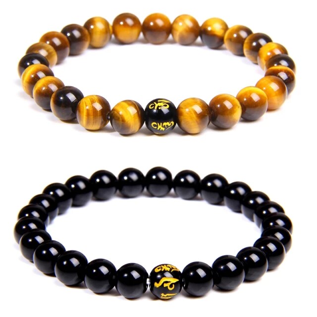 Vòng tay phong thủy đá mắt hổ mix hạt đá khắc chữ phạn cổ cho Nam Nữ văn phòng làm trang sức