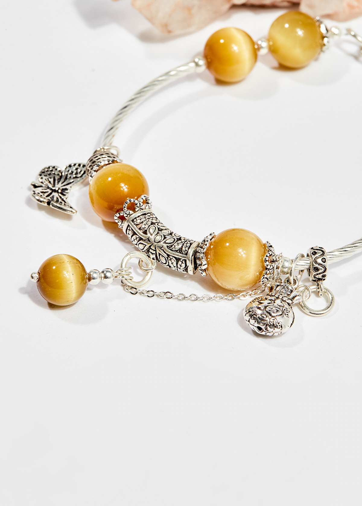 ✨Vòng tay phong thủy nữ đá mắt hổ vàng tâm charm bướm 10mm mệnh thổ , kim - Ngọc Quý Gemstones