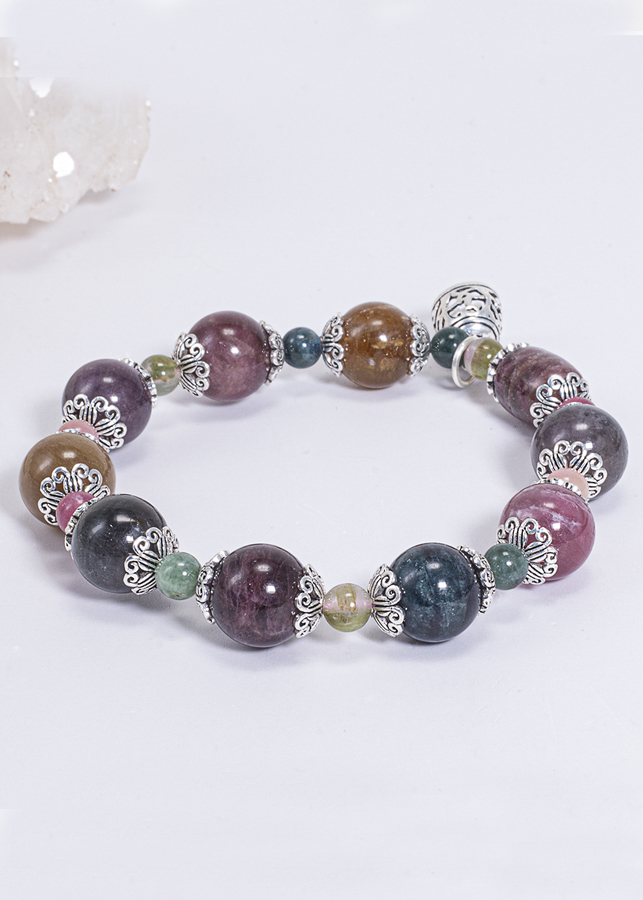 Vòng Tay Phong Thủy Nữ Đá Tourmaline Phối Charm Chuông Bạc (10mm) Nhiều Mệnh