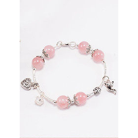 Vòng tay thạch anh hồng phối charm hồ ly bạc (10mm) phù hợp với những người mạng Hoả và mạng Thổ, mang lại may mắn và sức khoẻ cho người đeo mệnh này.