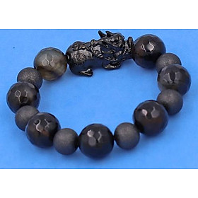 ✨Vòng tay Tỳ Hưu inox Charm Thạch Anh Đen Nâu Cắt Gíac 16 ly phối 6 bi - hợp mệnh Mộc, mệnh Thủy - Vòng size XXL