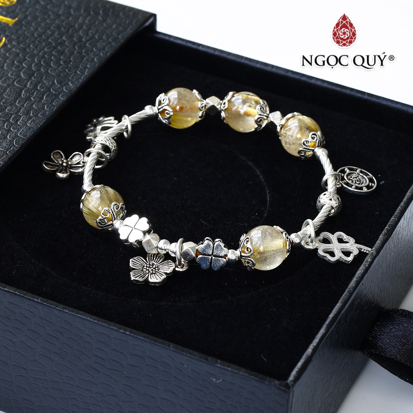 Vòng tay đá thạch anh tóc vàng phối charm bạc - Hợp mệnh kim, thủy | Ngọc Quý Gemstones |