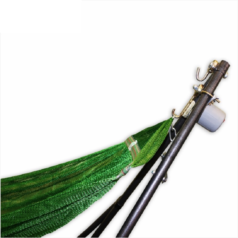 Ống thép, sơn tĩnh điện. đường kính 27.0mm, chiều dày 0.9mm. 4 thanh chống uốn cong, thẩm mỹ, thông thoáng, an toàn. Võng lưới sợi 100% polyester, mềm mịn, có độ co giãn, lưới Xuất