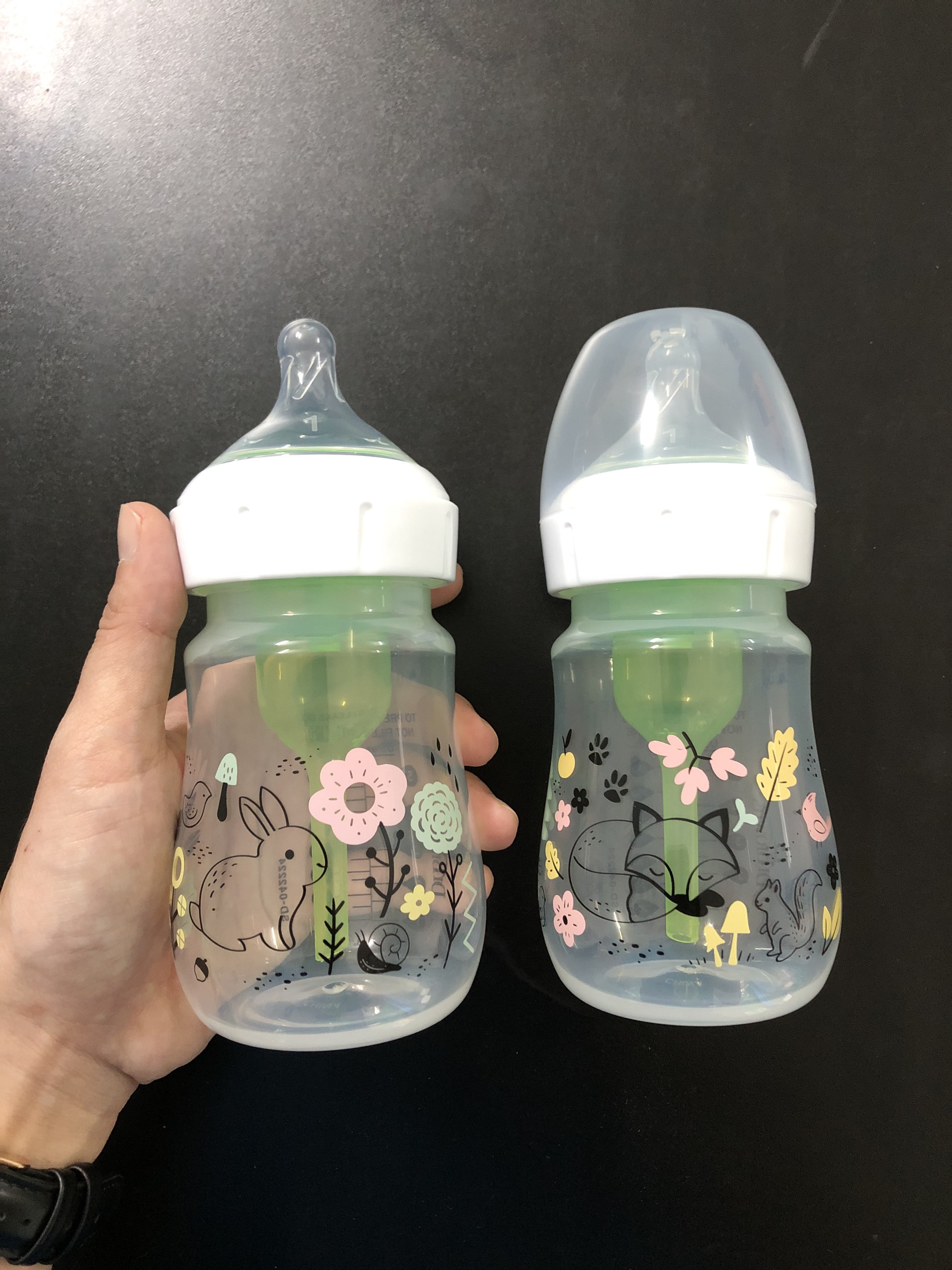 - Bộ 3 bình sữa nhựa PP 240ml; - Chất liệu nhựa PP cao cấp, không chứa BPA, khả năng chịu nhiệt đến 110°C; - Van thông khí hình chữ U điều chỉnh áp suất