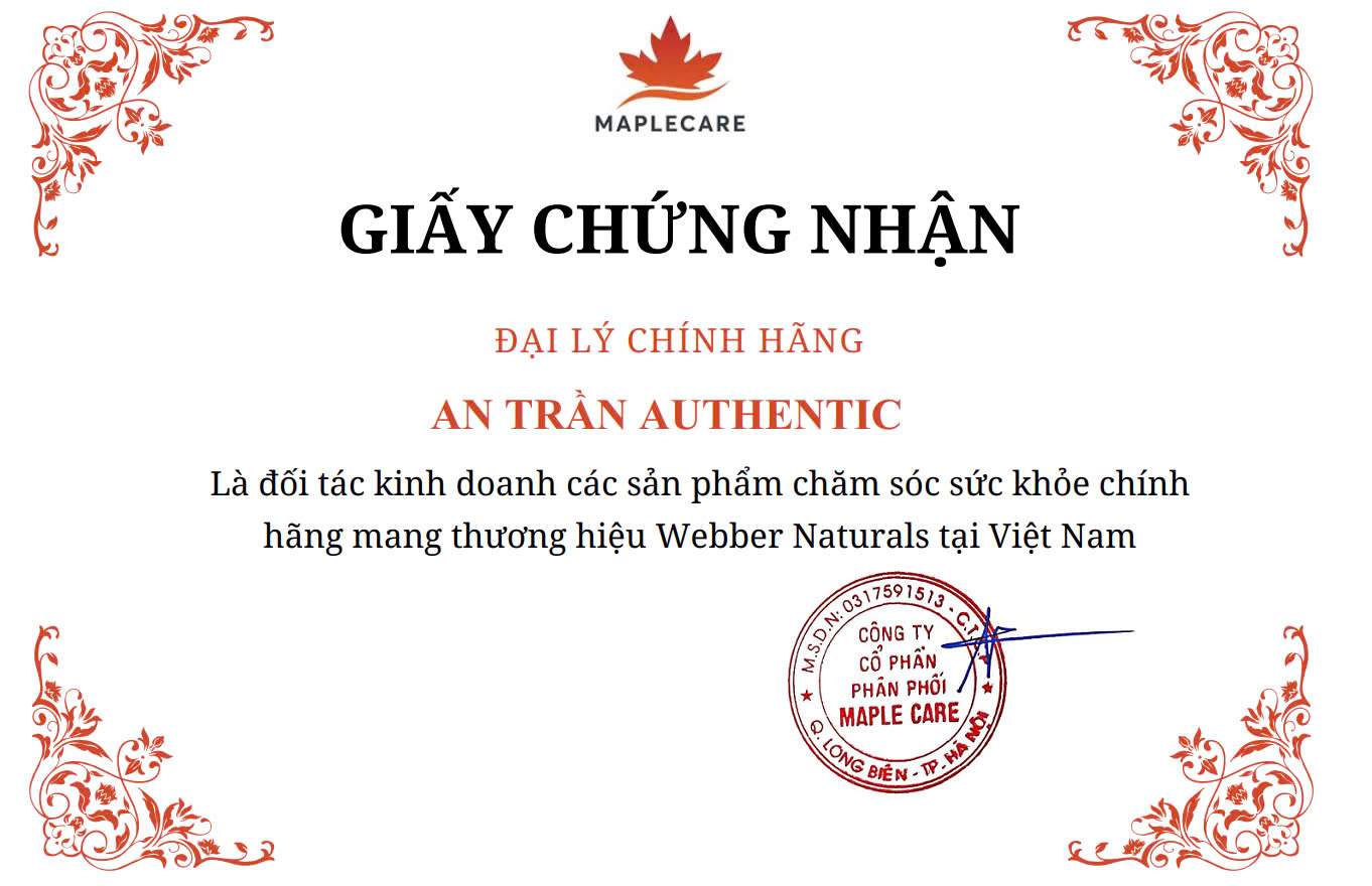 - Mô tả sản phẩm Viên uống bổ sung Webber Naturals Magnesium Bisglycinate 200mg là giải pháp hỗ trợ cung cấp Magie cho cơ thể, giúp duy trì sức khỏe tổng thể. Magie Bisglycinate là dạng dễ hấp thu, phù hợp với nhiều đối tượng sử dụng. Sản phẩm được sản xuất theo tiêu chuẩn nghiêm ngặt, đảm bảo chất lượng và an toàn. Webber Naturals chính thức ra mắt tại Việt Nam qua đối tác phân phối Maple Care Webber Naturals, thương hiệu thực phẩm chức năng uy tín đến từ Canada, đã chính thức có mặt tại Việt Nam qua đối tác phân phối Công ty Cổ phần Phân phối Maple Care. Với hơn 70 năm kinh nghiệm, Webber Naturals nổi tiếng với các sản phẩm chăm sóc sức khỏe chất lượng cao, sản xuất tại Okanagan Valley, British Columbia – khu vực sạch và nổi bật về bảo tồn thiên nhiên tại Canada. Sự hợp tác giữa Webber Naturals và Maple Care giúp mang đến cho người tiêu dùng Việt Nam các sản phẩm bổ sung dinh dưỡng chất lượng quốc tế, đáp ứng nhu cầu chăm sóc sức khỏe toàn diện. Nhờ đó, khách hàng Việt Nam có cơ hội tiếp cận những sản phẩm đạt tiêu chuẩn chất lượng từ Canada, với sự đảm bảo từ đối tác phân phối chính thức Maple Care Chứng nhận đại lý chính hãng.