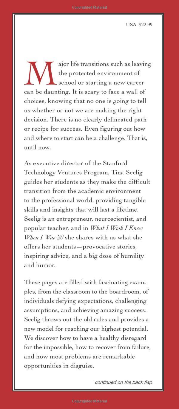 “Forget 20--This is the kind of stuff I wish I knew now... Tina is doing us all a big favor by giving us a roadmap to life!” (Guy Kawasaki, co-founder of Alltop and author of Reality Check )