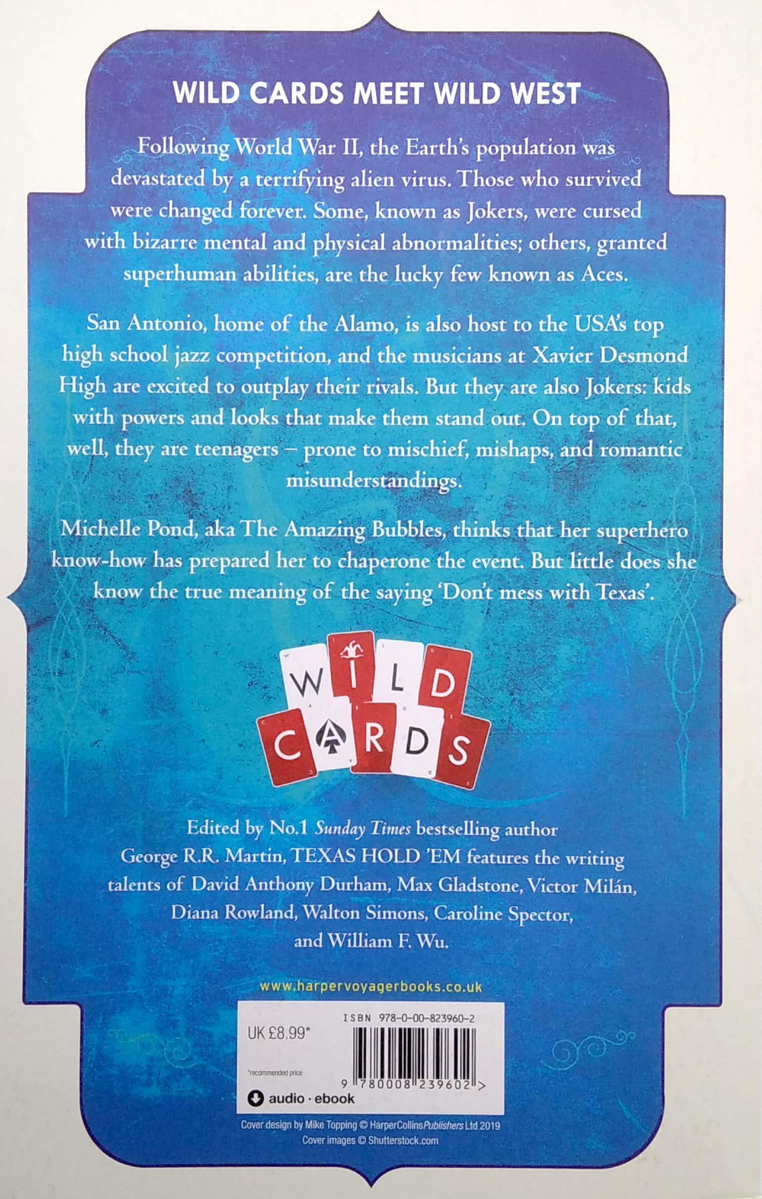 The return of the famous shared-world superhero books created and edited by George R. R. Martin, author of A Song of Ice and FireThe American Triad Series#1: Mississippi Roll#2: Low Chicago#3: Texas Hold 'EmWILD CARDS MEET WILD WESTFollowing World War II, the Earths population was devastated by a terrifying alien virus. Those who survived were changed forever. Some, known as Jokers, were cursed with bizarre mental and physical abnormalities; others, granted superhuman abilities, are the lucky few known as Aces. San Antonio, home of the Alamo, is also host to the USAs top high school jazz competition, and the musicians at Xavier Desmond High are excited to outplay their rivals. But they are also Jokers: kids with superabilties and looks that make them stand out. On top of that, well, they are teenagers prone to mischief, mishaps, and romantic lle Pond, aka The Amazing Bubbles, thinks that her superhero know-how has prepared her to chaperone the event. But little does she know the true meaning of the saying,