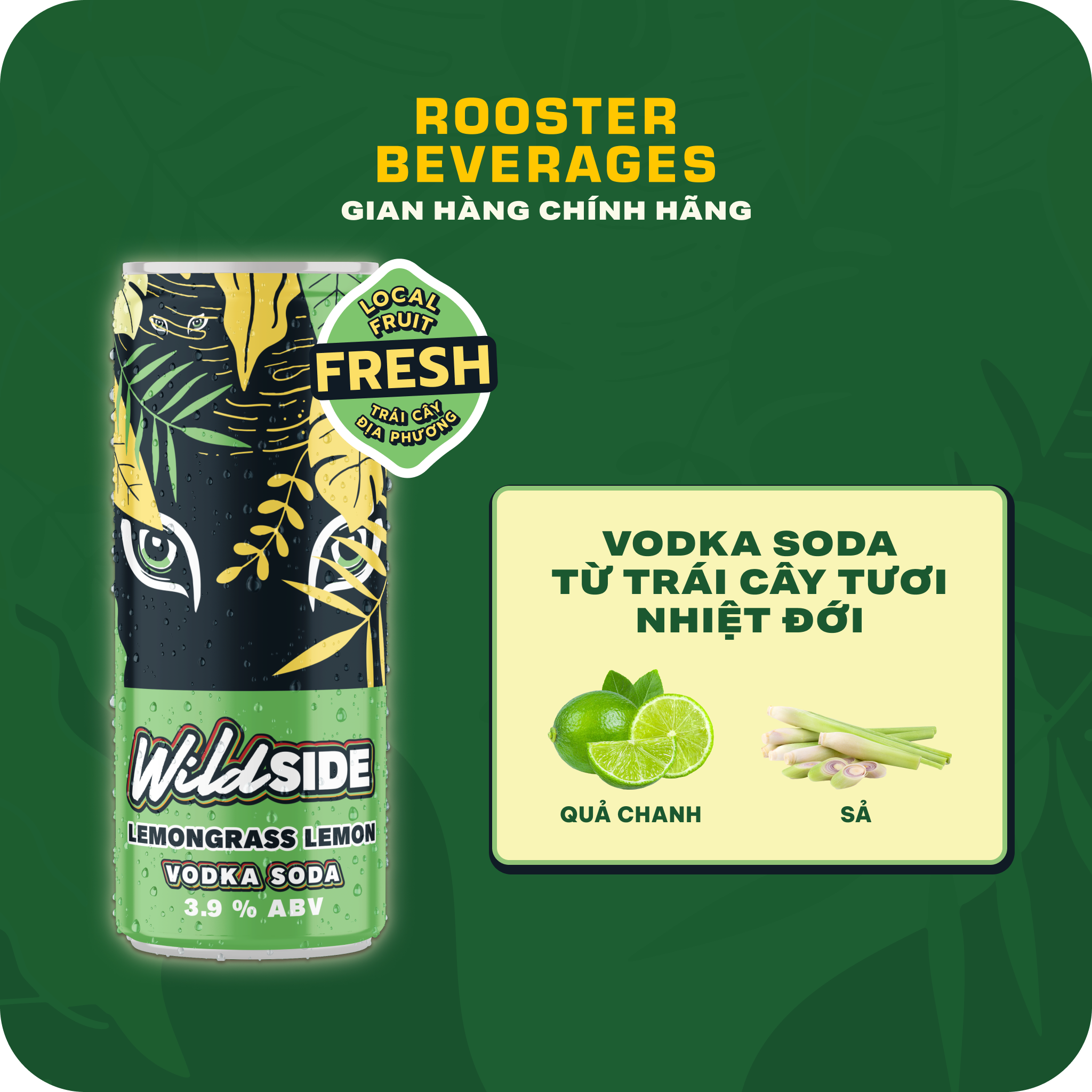 WILDSIDE VODKA SODA CHANH SẢ (LEMONGRASS LEMON) - ĐỘ CỒN 3.9% Nước chanh tươi được pha cùng chiết xuất xả non thanh mát, thêm đường mía ngọt dịu cùng chút cồn lên men từ mật