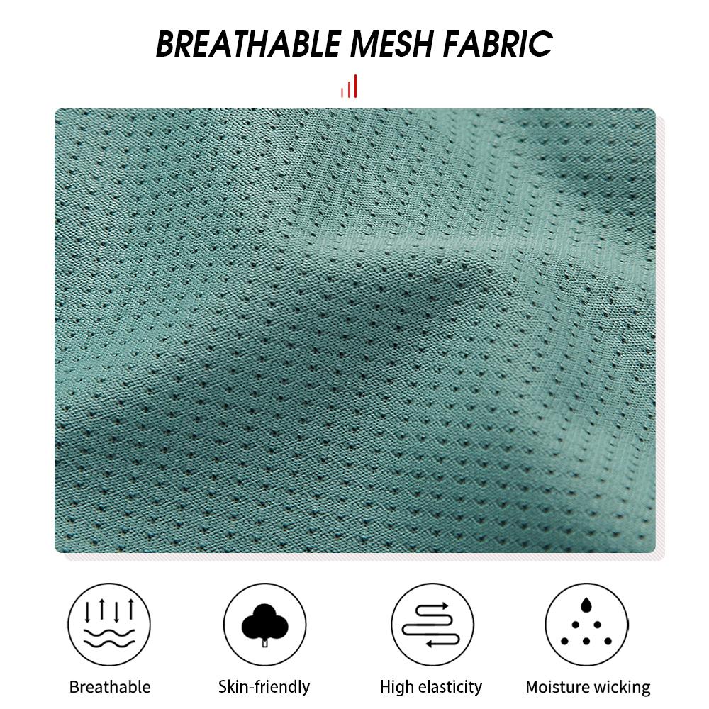 Made from polyester mesh fabric, lightweight, breathable and moisture-wicking.