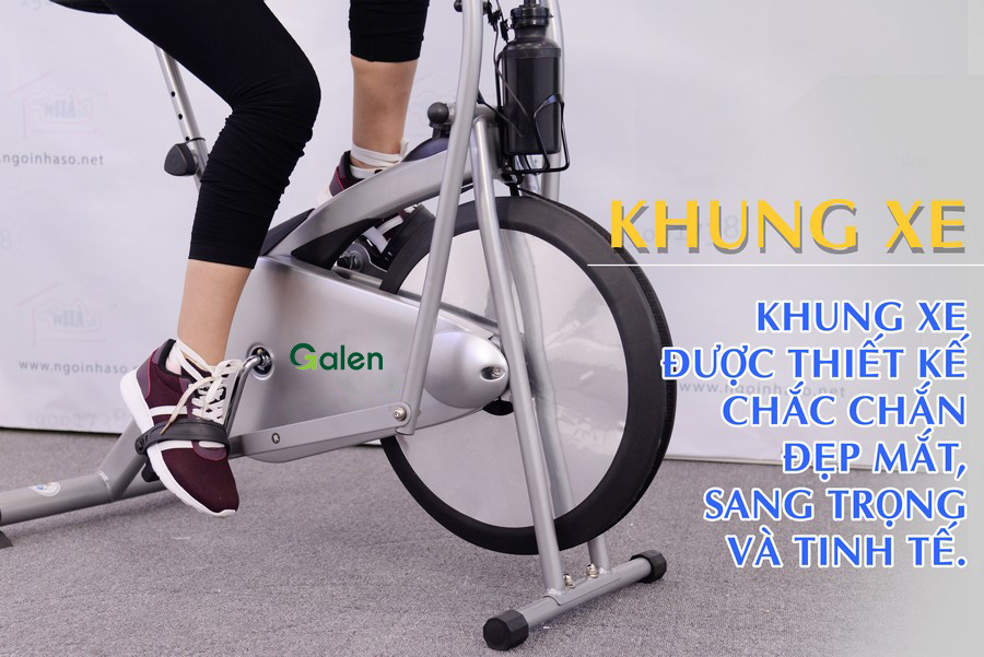 • Xe đạp tập thể thao Galen được cấu tạo từ bộ khung ống thép sơn tĩnh điện nhựa cao su cao cấp, không gỉ nên vô cùng bền và vững chắc cho người sử dụng khi tập luyện.