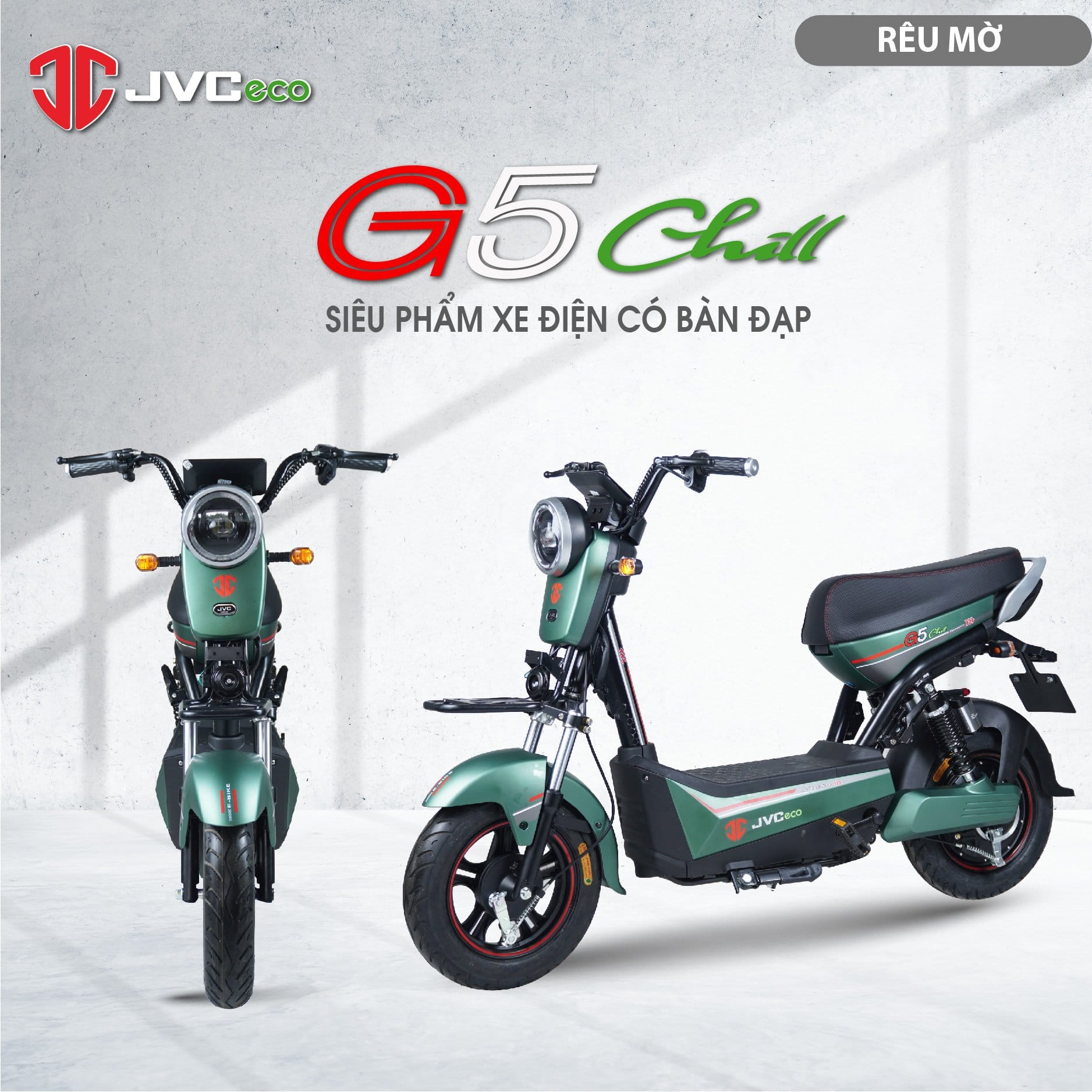 Mua tại TiktokJVC G5 CHILL XE ĐIỆN CÓ BÀN ĐẠP ️ JVC G5 CHILL được thiết kế theo phong cách HIỆN ĐẠI, TINH TẾ mang tới sự tự tin cho người lái ƯU ĐIỂM NỔI BẬT CỦA JVC G5 CHILL Bàn đạp trợ lực hỗ trợ hành trình di chuyển Bộ tem mới thiết kế THỜI TRANG Đèn pha dạng tròn góc sáng rộng hơn Tay ga, công tắc, tay phanh cao cấp đến từ thương hiệu Wuxing Đồng hồ dẹt hiển thị thông minh Yên xe êm ái in dấu ấn logo JVC Động cơ mới kết hợp với bộ điều khiển không dây Ắc quy được bổ sung thanh giằng bình chắc chắn tuyệt đối, tháo lắp dễ dàng hơn Vành trước nhập khẩu có thiết kế riêng biệt đồng bộ với động cơ Giam xóc sau nâng cấp chất lượng, bảo hành 12 tháng Động cơ và khung xe bảo hành 36 tháng Bình ắc quy bảo hành 18 tháng