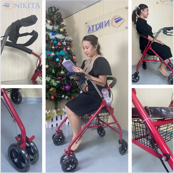 Xe tập đi bốn bánh cho người già có ghế ngồi, có giỏ đựng đồ, gấp gọn khi không sử dụng, chính hãng Nikita Xe tập đi có bánh lăn được thiết kế cổ điển