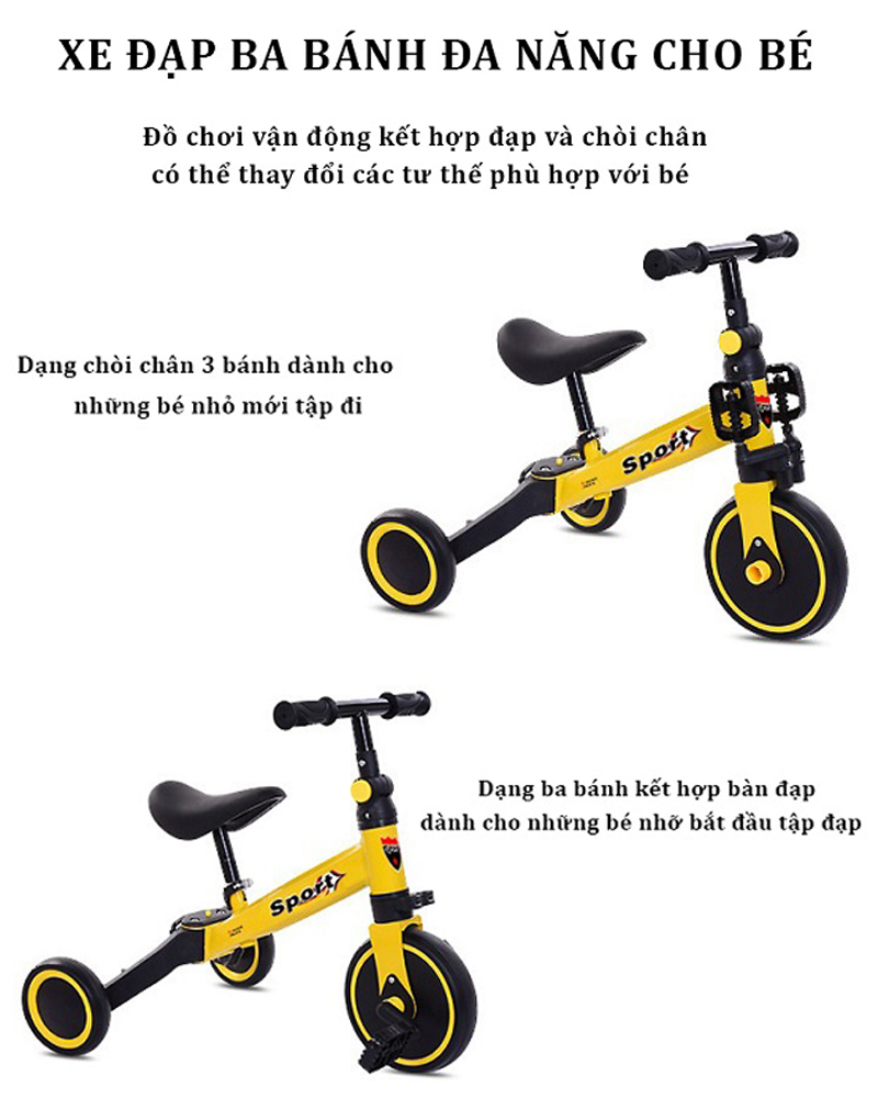 - Tính đa năng: Sự kết hợp giữa xe thăng bằng và xe chòi chân Sport tạo ra một sản phẩm đa năng, cho phép bé vận động và chơi đùa theo nhiều cách khác nhau. Bé có thể sử dụng xe thăng bằng để học cân bằng và tự tin di chuyển, sau đó chuyển sang sử dụng xe chòi chân để tăng cường sức mạnh cơ bắp và sự linh hoạt.