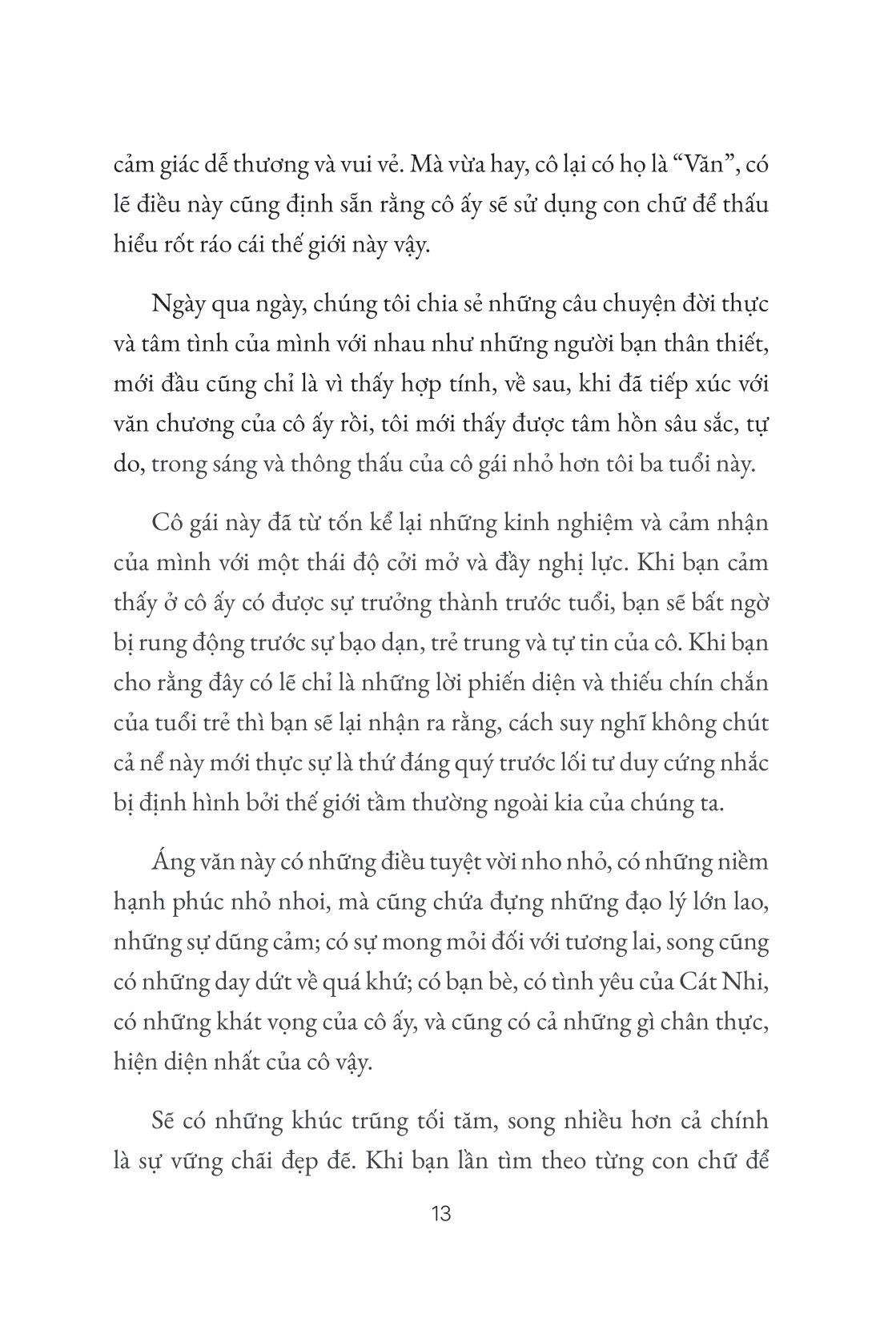 Bạn có biết làm sao để cảm nhận rằng mình đang trưởng thành hay không? Đó chính là hai khoảnh khắc khi nhắm mắt và mở mắt mỗi ngày của chúng ta đấy. Với từng ngày trôi qua trong cuộc đời mà chúng ta đang sống, không chỉ cần phải cố gắng bước về phía trước, mà còn phải học được cách tìm kiếm niềm hạnh phúc cho chính mình. Tuổi trẻ này chính là nguồn vốn tốt nhất của bạn. Cho dù chỉ còn một tia hy vọng, bạn cũng phải nỗ lực để thay đổi bởi trên thế giới này, ngoại trừ chính bản thân mình ra, không một ai có thể giúp bạn. Có người cười nhạo bạn, có người gây trở ngại cho cuộc sống của bạn, nhưng tất cả đều không hề quan trọng bằng việc bạn có đủ dũng khí, đủ nỗ lực để vươn tới ngày mai rạng rỡ. Bởi vậy cô gái à, nếu bạn chân thành và nỗ lực, ắt sẽ có vì sao sáng soi rọi con đường phía trước cho mình.