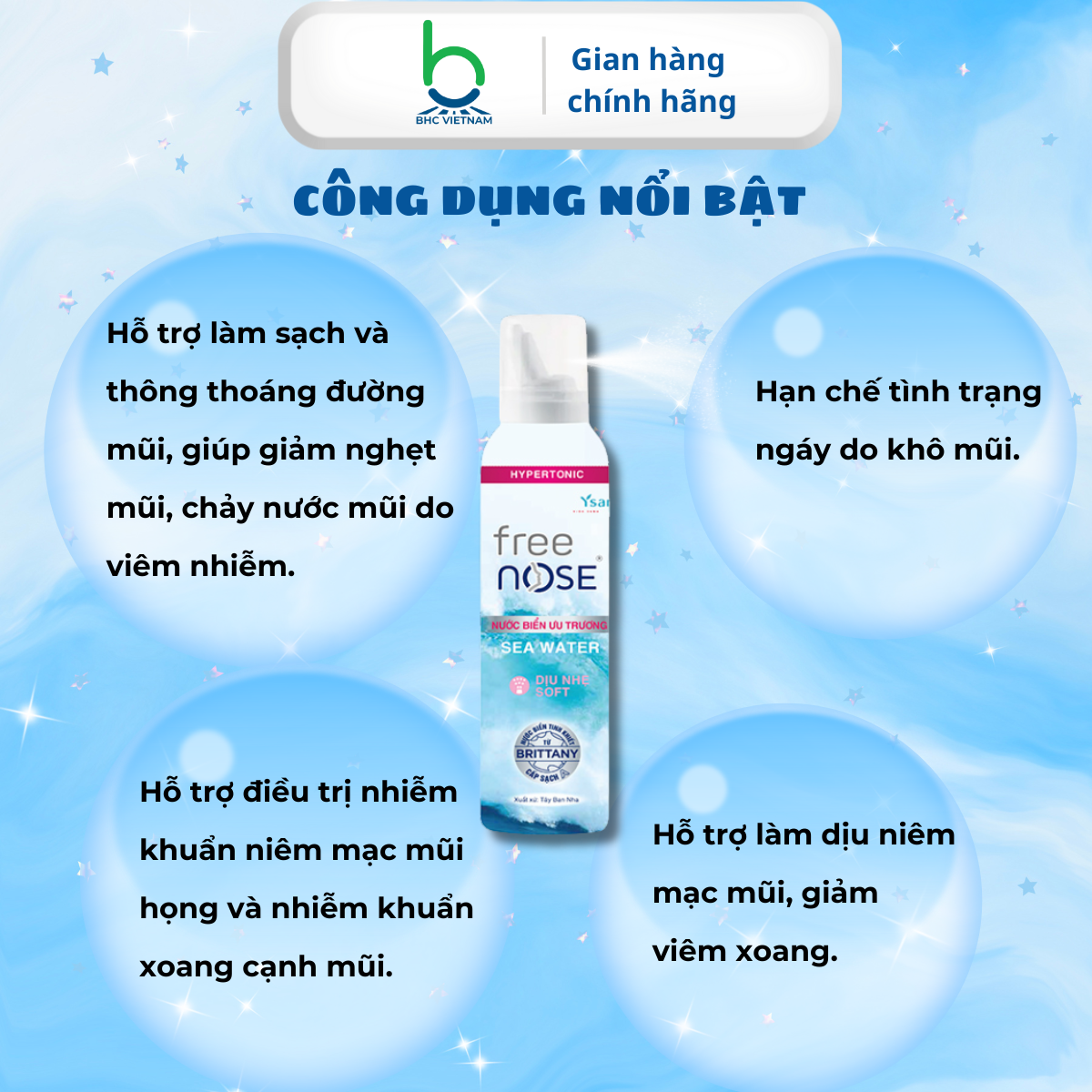 Xịt Mũi Free Nose Ưu Trương Hỗ Trợ Giảm Nghẹt Mũi, Chảy Nước Mũi Dành cho trẻ từ 3 tháng