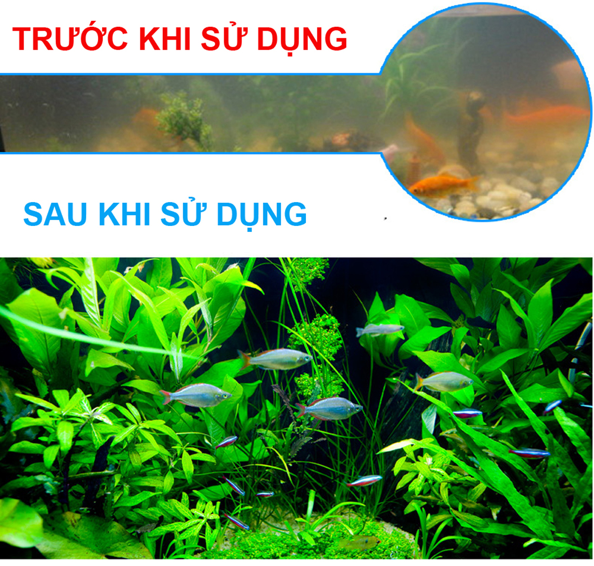 • Hồ Koi, hồ cá rồng, bể cá cảnh tổng hợp: Giữ nước sạch, trong, hỗ trợ sức khỏe và màu sắc cho cá.