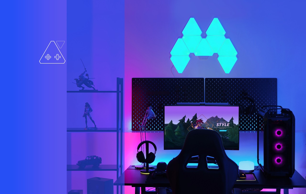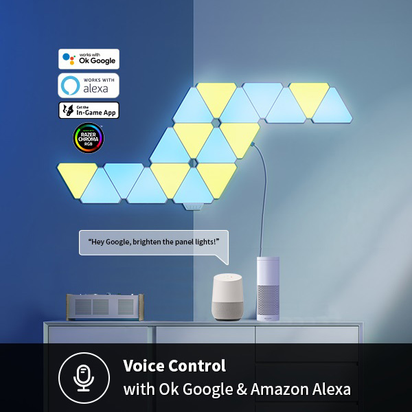 - Tương thích Google Home, Alexa, Razer Chroma - Phiên bản đèn LED RGB hình tam giác có thể lắp ghép theo sở thích - Đồng bộ ánh sáng theo nhạc và Game với Razer